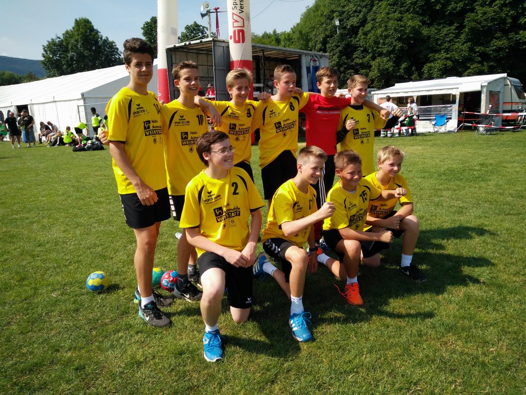 Am Samstag Morgen um 9h00 ging es für die männliche C1 zusammen mit den anderen SG-Jugendmannschaften mit Zelten, Schlafsäcken und Isomatten bepackt los in Richtung Owen zum SV-Cup auf den herrlich unter der Teck gelegenen Sportanlagen. Routiniert wurden in Rekordzeit zunächst Pavillons und Zelte aufgebaut, bevor es dann direkt ins Turnier ging gegen für uns unbekannte Mannschaften aus anderen Bezirken. Im ersten Spiel gegen den Nachwuchs des TV Plochingen zeigte die SG-Truppe von Anfang eine couragierte Leistung. Sowohl in der Abwehr waren die Jungs meist einen Schritt schneller als der Gegner und auch in der Offensive wurden sowohl in schönen Einzelaktionen aber auch im Kooperationsspiel der Gegner ein ums andere Mal sehenswert ausgespielt. Nach 2×8-Minuten war ein vollkommen ungefährdeter 13:4-Sieg eingefahren. Im zweiten Spiel gegen die mit Auswahlspielern gespickte C-Jugend der HABO Bottwar ging es bereits um den Gruppensieg, denn nur der der reichte zum Weiterkommen ins Halbfinale. Obwohl körperlich (wie üblich ;-)) unterlegen zeigte die SG wenig Respekt vor dem „großen“ Gegner und seiner robusten Gangart und hielt die Begegnung nach anfänglicher Führung lange offen. Nach großem Kampf und am Ende auch ohne das notwendige Quäntchen Glück verlor die SG gegen den späteren Turniersieger knapp mit 8:10. Damit war der Gruppensieg zwar nicht mehr zu erreichen, im dritten und letzten Spiel des Tages gegen den VfL Kirchheim wollten die Jungs allerdings nochmals Vollgas geben und sich anständig aus dem Turnier verabschieden. Obwohl an die gezeigten Abwehrleistungen der beiden ersten Spiele nicht angeknüpft werden konnte, was auch an den vom Trainerteam vorgenommenen Positionsrotationen lag, wurde auch hier ein ungefährdeter Sieg eingefahren. Die 17 Tore in 16 Minuten sprechen was die Angriffsleistung betrifft für sich. Damit war das Turnier für die mC trotz dreier sehr ordentlichen Leistungen schon beendet.