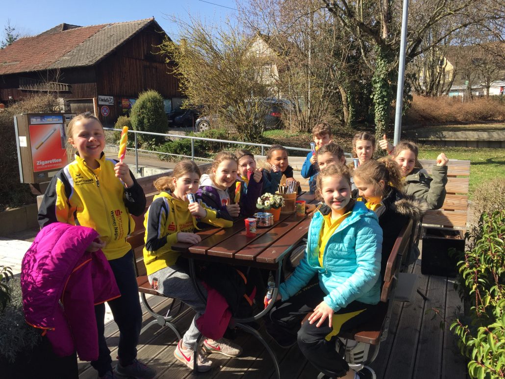 Da wir jetzt 2 1/2 Stunden Pause hatten , beschlossen wir kurzerhand zusammen mit den Mädels Eis essen zu gehen. Somit folgte ein kleiner Spaziergang in das TV-Heim Stettens für eine wohlverdiente Pause. Gestärkt ging es also ins Finale. Unser Gegner hieß Remshalden. Die Mädels starteten wie sie aufgehört hatten und zeigten dass wir verdient im hart umkämpften Finale standen. Da uns Remshalden körperlich definitiv gewachsen war, mussten wir mehr Bewegung ins Spiel bringen und das klappte auch von Anfang an. Sie spielten zusammen, kämpften für einander. Man merkte bei diesem Spiel noch mehr wie bei beiden zuvor, dass sie verstanden hatten, was es heißt für einander zu spielen. Somit ging dieses letzte Spiel verdient an unsere 10 Mädels, die von der ersten Sekunde des ersten Spieles bis zur letzten Sekunde des Finales kämpften was das Zeug hielt. (15:5).