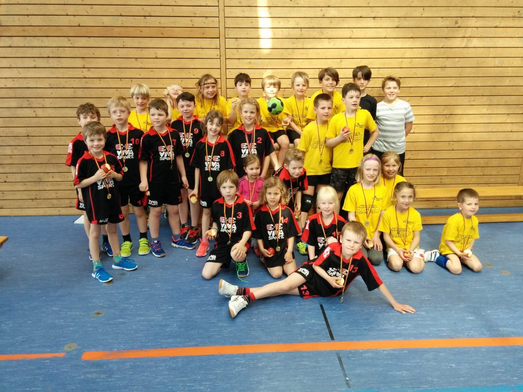 Beide Maxi-Minigruppen der SG oder auch die F-Jugend wie sie vom DHB umgetauft wurden, traten am frühen Samstagmorgen mit 3 Mannschaften beim Doppelspielfest des TV Stetten an.Beim Handball und Königsball zeigten die 2 „älteren“ Mannschaften die nach Ostern in die E-Jugend kommen was sie können. Hochmotiviert und mit maximalem Einsatz wurde um jeden Ball gekämpft und so konnten auch fast alle Spiele gewonnen werden…die E-Jugend kann also kommen!!! Die „kleineren Nachwuchshandballer“ zeigten ebenfalls tolle Spiele und reihten sich nahtlos ins begeisterte Gesamtbild ein. Im Spieleparcours waren sich dann Groß und Klein einig: die Hüpfburg sorgte bei beiden für rote Köpfe, am Nagelbrett zeigte so mancher unerwartetes Geschick beim Nageln mit dem Hammer, das „Skilaufen“ erforderte eine koordinierte Zusammenarbeit zu Dritt um nicht aus der Spur zu fliegen, auf der Wackelmatte hielte sich alle wacker auf den Beinen und beim Kissenkampf auf der Bank schlugen sich alle , im wahrsten Sinne des Wortes, tapfer“! Ein rundum gelungenes Spielfest unserer Sportfreunde aus Stetten, im sehr angenehmen Zeitrahmen und mit hervorragender Verpflegung, sorgte also für alle Handballfreunde für einen tollen Start ins Wochenende.