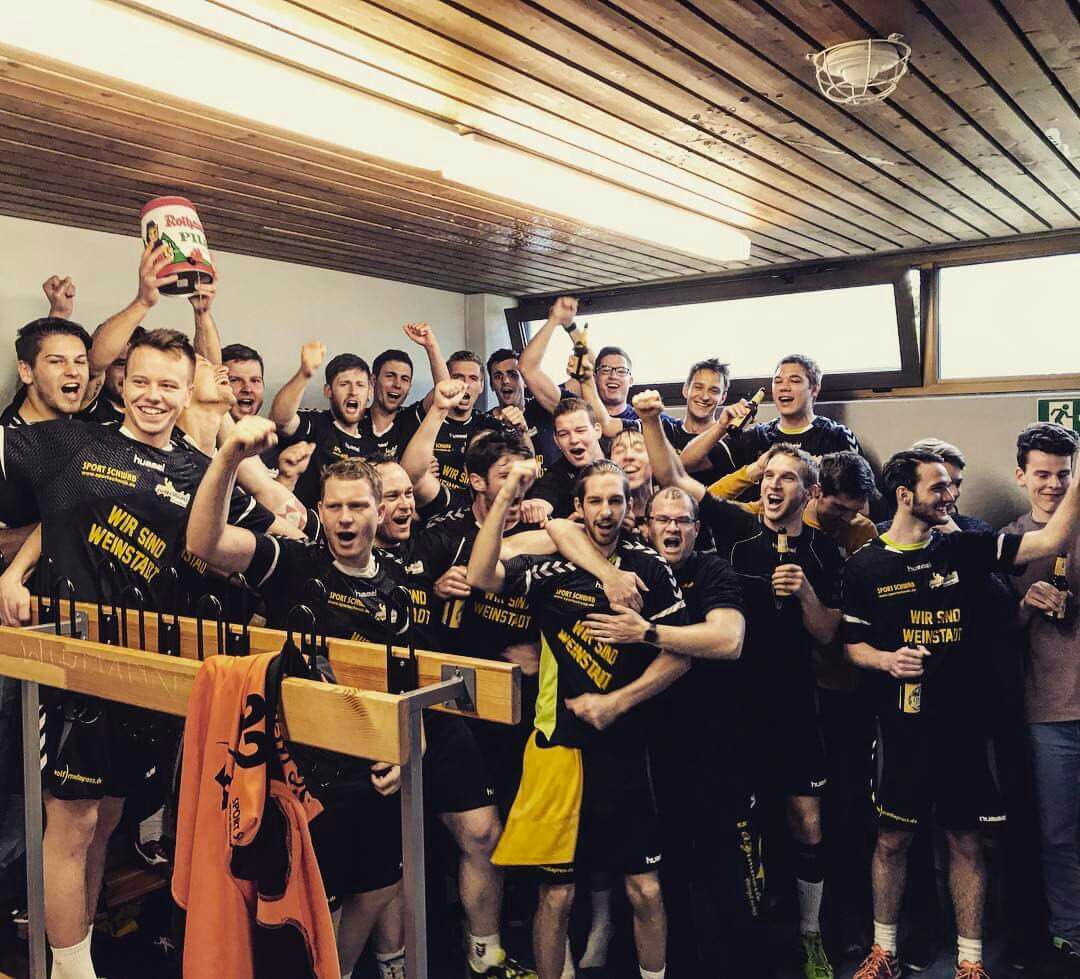 „Aufsteiger, Aufsteiger hey hey“ schallte es um 17:30Uhr durch die Beutelsbacher Sporthalle. Die Männer 2 haben ihre Saison gekrönt und sich auch im letzten Heimspiel die Butter nicht mehr vom Brot nehmen lassen. Von Beginn an stellten die SGW klar, dass vor heimischem Publikum die Punkte in Weinstadt bleiben werden. Konzentriert ging man in der Defensive zu Werke und stellte die Gäste aus Stuttgart vor eine schier nicht zu lösende Aufgabe. Nach einer früher 7:1 Führung lief alles nach Plan für die Truppe um die Erfolgstrainer Ihl und Müller. Die Gäste fanden nun zwar besser in die Partie, richtig eng sollte diese jedoch im gesamten Spielverlauf nicht werden. Immer wenn es nötig war, legte Weinstadt in der Deckung an Aggressivität zu und setzte auf schnelle Tore aus der 1.und 2. Welle. Besonders Boland präsentierte sich nochmal besonders torhungrig und netzte via Konter, aus dem Rückraum oder vom Punkt satte 16 Mal treffsicher ein und auch Tobias Paul konnte sich mehrfach sehenswert durch die Stuttgarter Abwehr schlängeln. Den emotionalsten Treffer erzielte jedoch Sebastian Walden, der in seinem letzten Heimspiel die Mannschaft als Kapitän aufs Feld führte und dessen Tor zum 31:22 lautstark von den zahlreichen Fans gefeiert wurde.