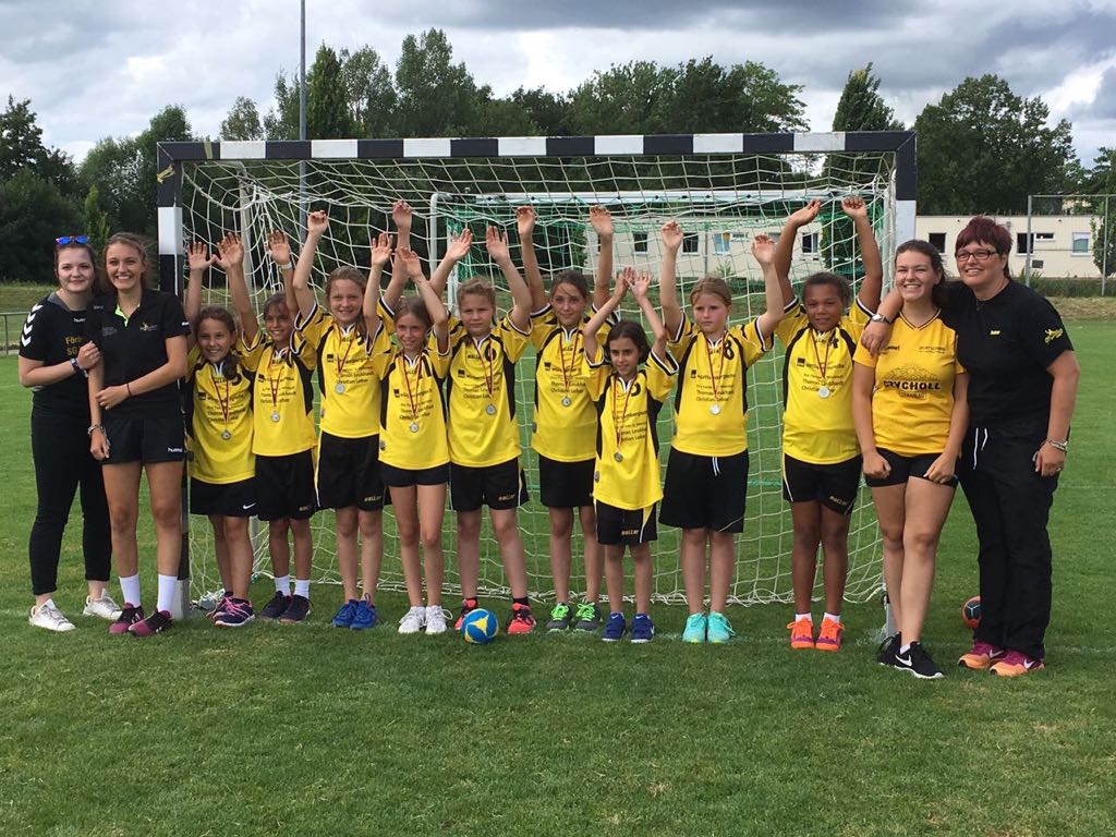 Mit einem kleinen Dämpfer starteten wir in das erste Spiel des diesjährigen Bezirksspielfest. Denn unser erstes Spiel gegen Waiblingen verloren wir mit 6:7. Das wollten die Mädels nicht auf sich sitzen lassen und legten im zweiten Spiel nochmal los und mit einer geschlossenen Mannschaftsleistung gewannen wir unser zweites Spiel gegen Welzheim mit 11:9. Ab da steigerten sich die Mädels von Spiel zu Spiel. Unser drittes Spiel gegen die WSG Allowa gewannen wir mit 12:7. Die Mädels liefen sich immer besser frei und wenn man nicht gerade den Torwart abschoss, resultierten aus schönen Anspielen auch immer öfter Tore. Unser letzter Gegner war der SC Korb. Man wollte unbedingt eine Runde weiter kommen und somit gab man nochmal alles. Und auch hier liefen die Mädels was das Zeug hielt und zeigten ein weiteres Mal was eine gute Mannschaftsleitstung ist.