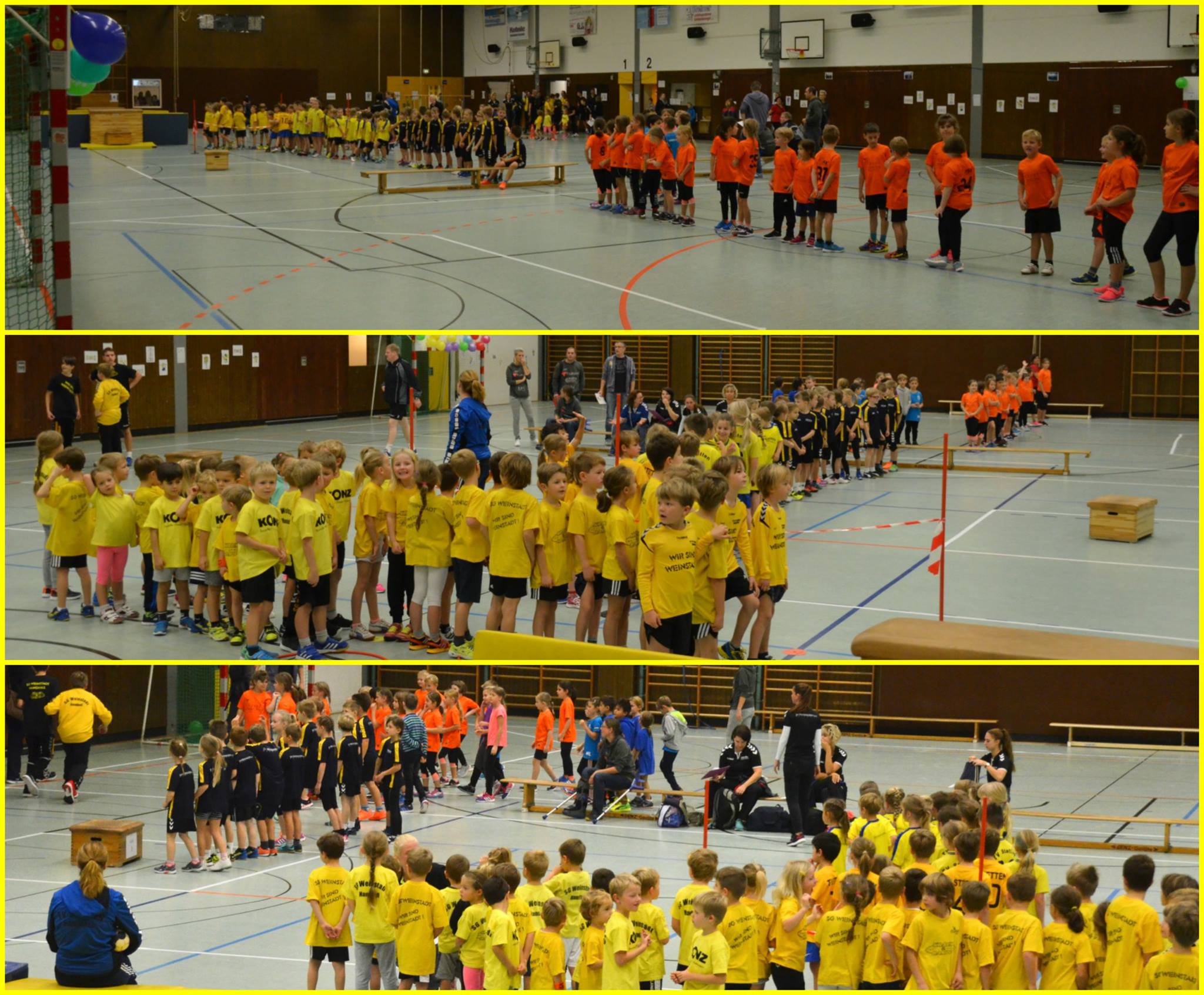 Zwölf Teams aus Urbach, Plüderhausen, Stetten , Remshalden, Korb und von der SG Weinstadt sind am Sonntag mit dabei gewesen beim Minispielfest der SG in der Sporthalle beim Stadion. Neben Handball ging es um die Minions und deren Geschick, den größten Bösewichten der Welt versehentlich ins Handwerk zu pfuschen. Die sportlichen Leistungen der rund 120 Nachwuchshandballer vor großer Zuschauerkulisse, die waren allerdings volle Absicht.