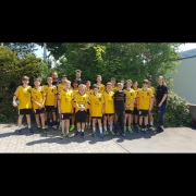 Bei unserer Quali zur Bezirksklasse trafen wir am vergangenen Samstag in Hohenacker auf die beiden Teams des MTV Stuttgart und der SV Hohenacker-Neustadt. Unser erstes Spiel gegen den MTV begann vor allem mit einer starken Abwehrleistung und einem guten Zusammenspiel. Jedoch scheiterten viele unserer schön herausgespielten Torwürfe leider an Pfosten oder Latte des gegnerischen Tores. Das war aber nur einer der vielen Gründe, weshalb die Jungs der SGW ab der Mitte des Spiels einem kleinen Rückstand hinterher laufen mussten, welchen sie leider auch bis zum Schluss nicht mehr aufholen konnten. Da wirklich alle Jungs alles gegeben hatten, war die Enttäuschung über die knappe 6:7 Niederlage riesig. Doch nach einem kurzen Stimmungstief und einer motivierenden Ansage der Trainer in der Kabine, war das erste Spiel weitestgehend aus allen Köpfen gestrichen und die Jungs gingen voller Elan in das zweite und damit auch entscheidende Spiel. Auch in dieser Partie verlief der Anfang etwas schleppend, aber nach etwa 13 Minuten stand schon ein ziemlich großer Vorsprung auf der Anzeigentafel. Durch viele, wirklich sehr schöne Anspiele konnten von allen Positionen Tore erzielt werden, was am Schluss einen verdienten 11:7 Sieg mit sich brachte. Nach dem Abpfiff war dann die Freude bei den Jungs, aber auch bei den Trainern und Eltern sehr groß, da das angestrebte Ziel „Bezirksklasse“ damit erreicht werden konnte. Zum Abschluss bekamen die Trainer in der Kabine von den Jungs auch noch ein großes Lob ausgesprochen, da eigentlich ein trainingsfreier Tag eingeplant war, die Jungs aber lautstark protestieren, da sie lieber trainieren wollten. Somit geht nun direkt die Vorbereitung auf die kommende Saison weiter.