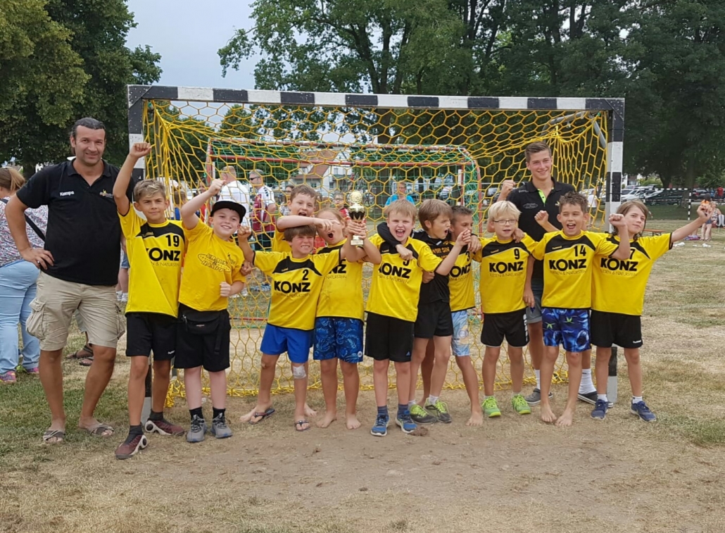 Die weite Anreise früh morgens am Sonntag nach Sontheim war den Jungs der männlichen E1 nicht anzumerken. Gleich im ersten Spiel gegen die SG Ulm & Wiblingen zeigte die Mannschaft mit einem 12:5 Sieg wie heute E-Jugendhandball gespielt wird. Im zweiten Spiel gegen die HSG Lauingen/Wittislingen wurden bei einer 7:2 Führung die Seiten gewechselt. Die zweite Hälfte verlief ähnlich gut und zum Erstaunen aller wurde das Spiel nur knapp mit 10:8 gewonnen. Der verwirrte Schiri hatte leider in der 2. Halbzeit unsere erzielten Tore dem Gegner angerechnet und die vom Gegner uns (eigentlicher Endstand 13:5). Im letzten Gruppenspiel traf man auf die HSG Oberkochen/Königsbronn welche im Turnierfinale in Göppingen schon geschlagen wurde. Der Gegner gewann in den letzten Wochen die Turniere in Hofen und Steinheim und man war vorgewarnt. Es entwickelte sich eine hart geführte Partie in welcher wir am Ende souverän 7:3 siegten. Als Gruppenerster zogen wir direkt ins Finale gegen den Gastgeber TV Brenz. Die 20 gespielten Minuten waren eine deutliche Angelegenheit (8:2) und der verdiente Turniersieg war vollbracht.
