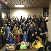 Ungewöhnlich voll war die Halle am Mittwochabend während dem Training der mE3/4. Grund hierfür war das gemeinsame Training von Eltern und Kindern als Jahresabschluss. Die Jungs traten gegen ihre Eltern in einer von ihnen gewählten Koordinationsübungen an. Trotz ihres Trainingsrückstandes und teilweise kaum Vorerfahrungen schlugen sich die Eltern sehr gut und konnten 130 Punkte sammeln. Zum Sieg reichte es dennoch nicht ganz. Die Jungs gewannen mit 144 Punkten. Im anschließenden Handballspiel gegen die Eltern wurde es dann noch einmal eng für die Jungs. Die Eltern waren hochmotiviert und zeigten einige beachtliche Tricks. Die ganze Mannschaft inklusive Trainer und Unterstützung der Geschwister war auf dem Feld nötig um dagegen zu halten. Den Abend ließen wir bei Glühwein (für die Eltern und Trainer), Punsch und Gutsle ausklingen. Wir Trainer möchten uns nochmals ganz herzlich für das Weihnachtsgeschenk und die Unterstützung der Eltern während der Saison bedanken!