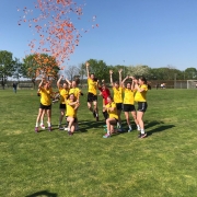 Wieder um 7h45 ging es dann am Sonntag morgen in Richtung Valkenhuizen, dem Spielort der Finalrunde. Im Viertelfinale warteten die Schweizer Mädels des HC Büelen Nesslau, die nach anfänglichen Startschwierigkeiten schließlich ungefährdet mit 12:5 besiegt werden konnten. Im Halbfinale kam es dann wieder zu einem deutsch-holländischen Duell gegen den H.V. Westfriesland, die bis dahin einen sehr guten Eindruck hinterlassen hatten und auch alle Spiele souverän für sich entscheiden konnten. Im besten Spiel des Tages zeigten die SG-Mädels vor allem in der Abwehr eine bärenstarke Leistung und durften sich nach dem 16:9-Sieg über den doch etwas unerwarteten Einzug ins Finale freuen. Die lange Spielpause wurde mit Mittagessen, Relaxen bei Partymusik in der Sonne und Eis am Stiel und einer Drohnen-Fotosession gekonnt überbrückt – um 15h30 zum Endspiel waren die Mädels wieder voll auf der Höhe. In einem packenden Fight gegen das holländische Team Droom naar Daad hieß es nach 25 Minuten 13:12 für die Gelb-schwarzen aus Weinstadt. Der Jubel über den Turniersieg beim Arnhem Cup 2019 kannte keine Grenzen und wurde mit den Tags zuvor organisierten Konfettikanonen (leider nur in orange ;-)) ausgiebig gefeiert! Der Rest vom Sonntag war Party pur, sodass die Heimfahrt am nächsten Morgen von den meisten Mädels mehr oder weniger verschlafen wurde.
