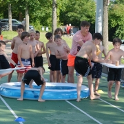 Das darauffolgende Training am Mittwoch sollte bei fast 35° C für Spaß und Abkühlung sorgen. Unter dem Motto „Wasser“ wurde als erstes ein Pool randvoll mit Wasser gefüllt. Verschiedene Geschicklichkeits- und Teamfindungsspiele in Wettkampfform, natürlich mit viel Wasser, machten allen viel Spaß. Die abschließende Wasserschlacht am Trainingsende war der krönende Abschluss einer tollen Trainingsstunde.