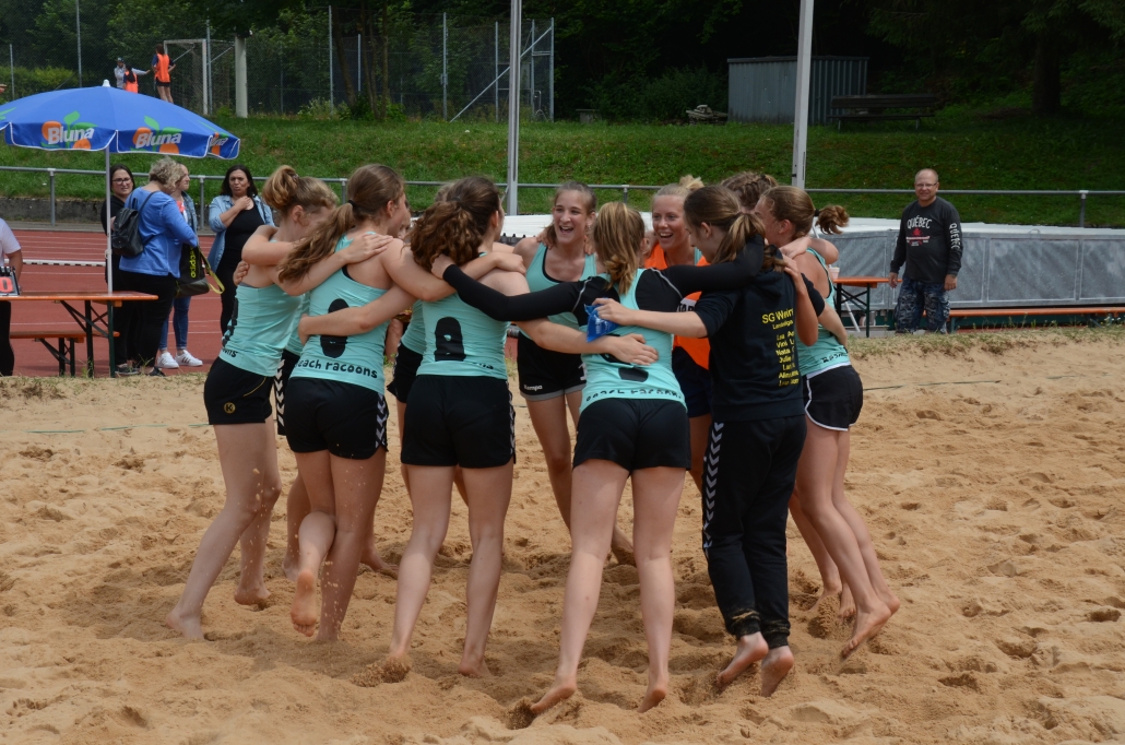 Hier wartete nun die unbekannte Truppe des SC Lehr und wollte den Beach Racoons das Leben so schwer wie möglich machen. Den Turniersieg vor Augen ließen aber auch hier die SG-Mädels nichts anbrennen und konnten den Turniersieg mit Siegershirts ausgiebig bejubeln!