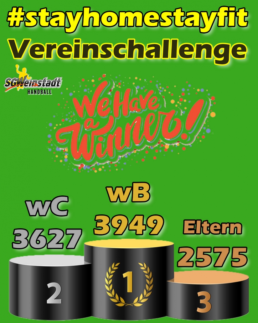 #stayhomestayfit – Die SGW-Vereinschallenge ist nach mehr als SECHS Wochen gestern Abend um 00h00 zu Ende gegangen! Ihr alle habt unsere Erwartungen bei weitem übertroffen und tagtäglich unglaubliche Leistungen abgeliefert: Alles aufzuzählen wäre viel zu viel, es sind aber mehr als 5000 Fahrradkilometer zusammen gekommen, mehr als 2000 Laufkilometer, unzählige Fittnesseinheiten bei Benny Karl , Felix Bauer, HandballCamp, Sascha Huber und vielen anderen, die mitgeholfen haben, uns fit zu halten!