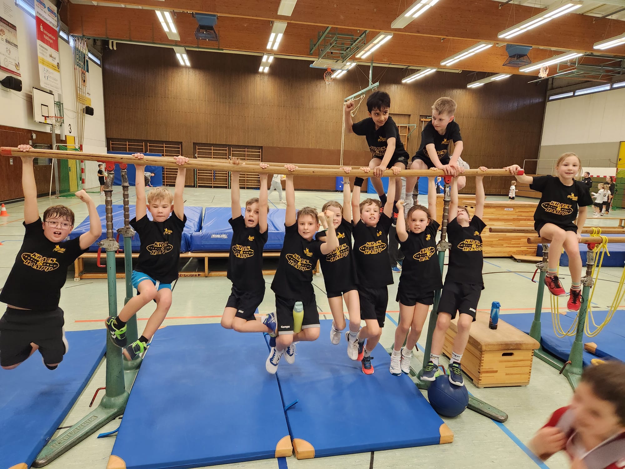 Beim Heimspieltag der gJF1 durften alle Kinder mitspielen, 11 an der Zahl. Das war zwar schwierig beim auswechseln, aber es kam jeder auf seine Kosten. Unser Gegner war der TV Bittenfeld 1 mit lauter starken 17er Jungs. d.h. wir hatten nicht wirklich eine Chance gegen sie. Die Kinder kämpften sich aber alle super durch, gaben ihr bestes und hatten viel Spaß. Auch beim Bewegungsparcour mit viel hangeln und springen waren sie begeistert dabei